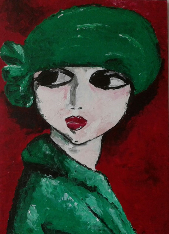 This is my version of a painting by Kees van Dongen (The Corn Poppy). One of my friends gave me a picture of it and it intrigued me, so I decided to paint it. Sometimes it is good to try something different. Other artist’s can be very inspiring. It is painted with acrylic and a pallet knife.This painting is for sale.