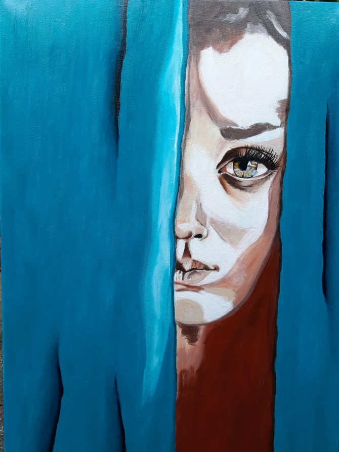 This painting is in oil and acrylics, and shows the consequences of a wrong decision, to lock up the healthy people as well and destroy everything in stead of locking up the people who have a bigger risk,and keep us out of economic disasters.