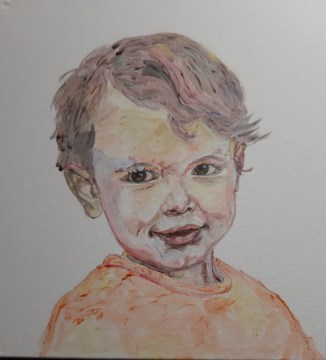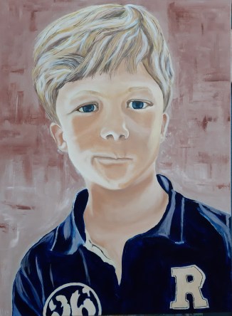 This is a painting from my lovely grandson in the same style as the one of his sister.