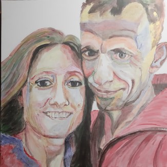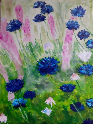 This is a painting from my oldest daughter and her husband ,also in acrylics, it’s more colourful than the little paintings.