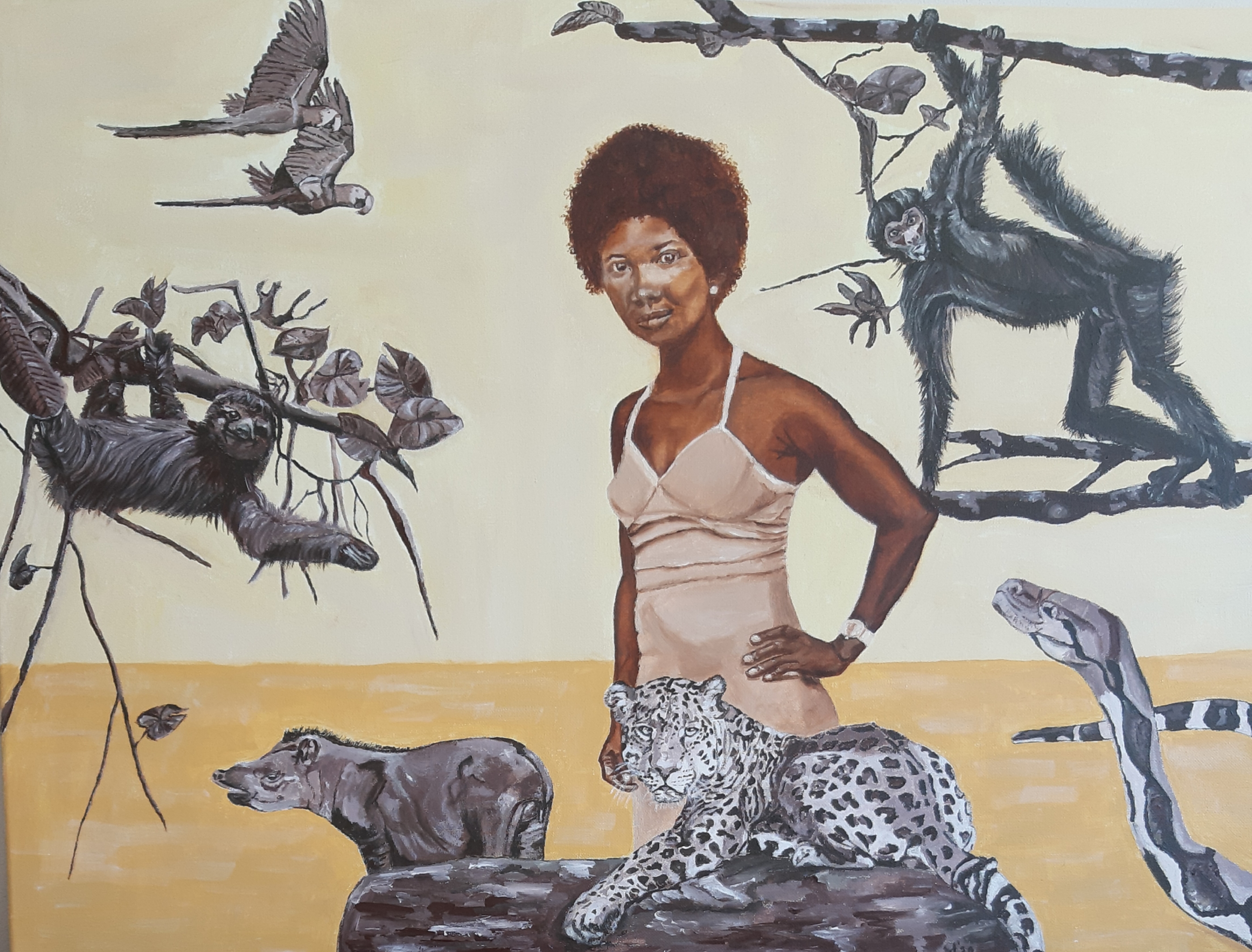I love it, the animals are done in acrylics ,the woman in oilpaint that explains the difference colour .