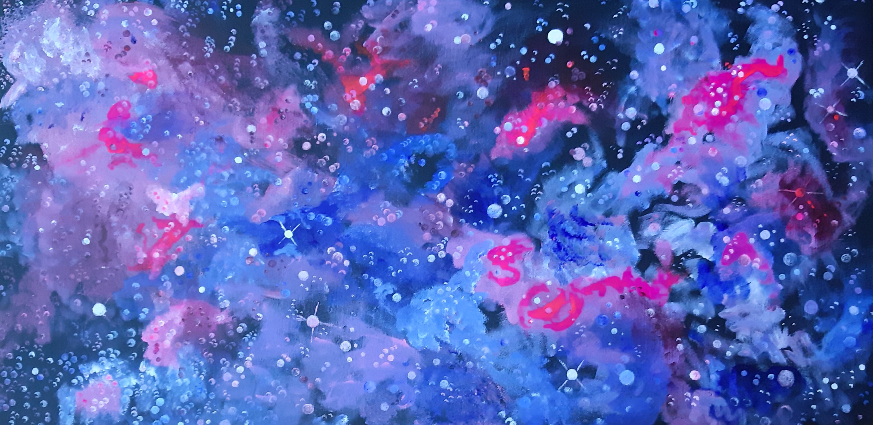 This painting I made after I saw photos of parts of the universe.I didn’t know that it had so many beautiful colours, I couldn’t imagine the beauty of it.So I decided to try to paint it,it was a lot of work ,so many planets wherever you looked,but it was great fun to see how it became real.this will not be the last one๐.Imagine this is just a tiny part of it,so beautiful.